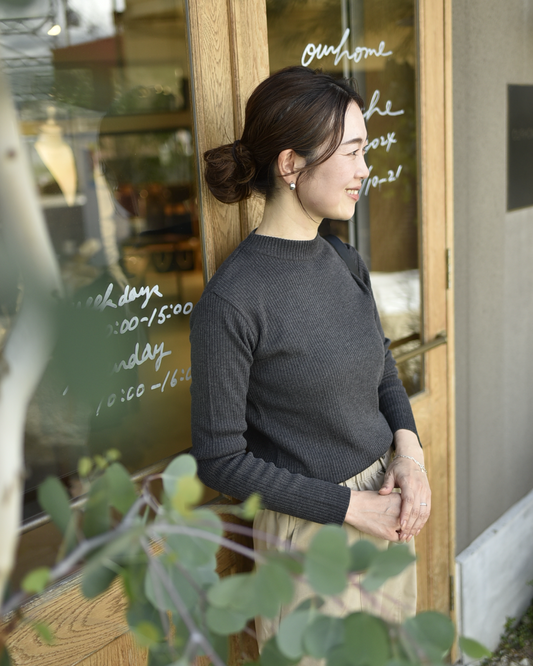 ツヤ感素材の長袖カットソー