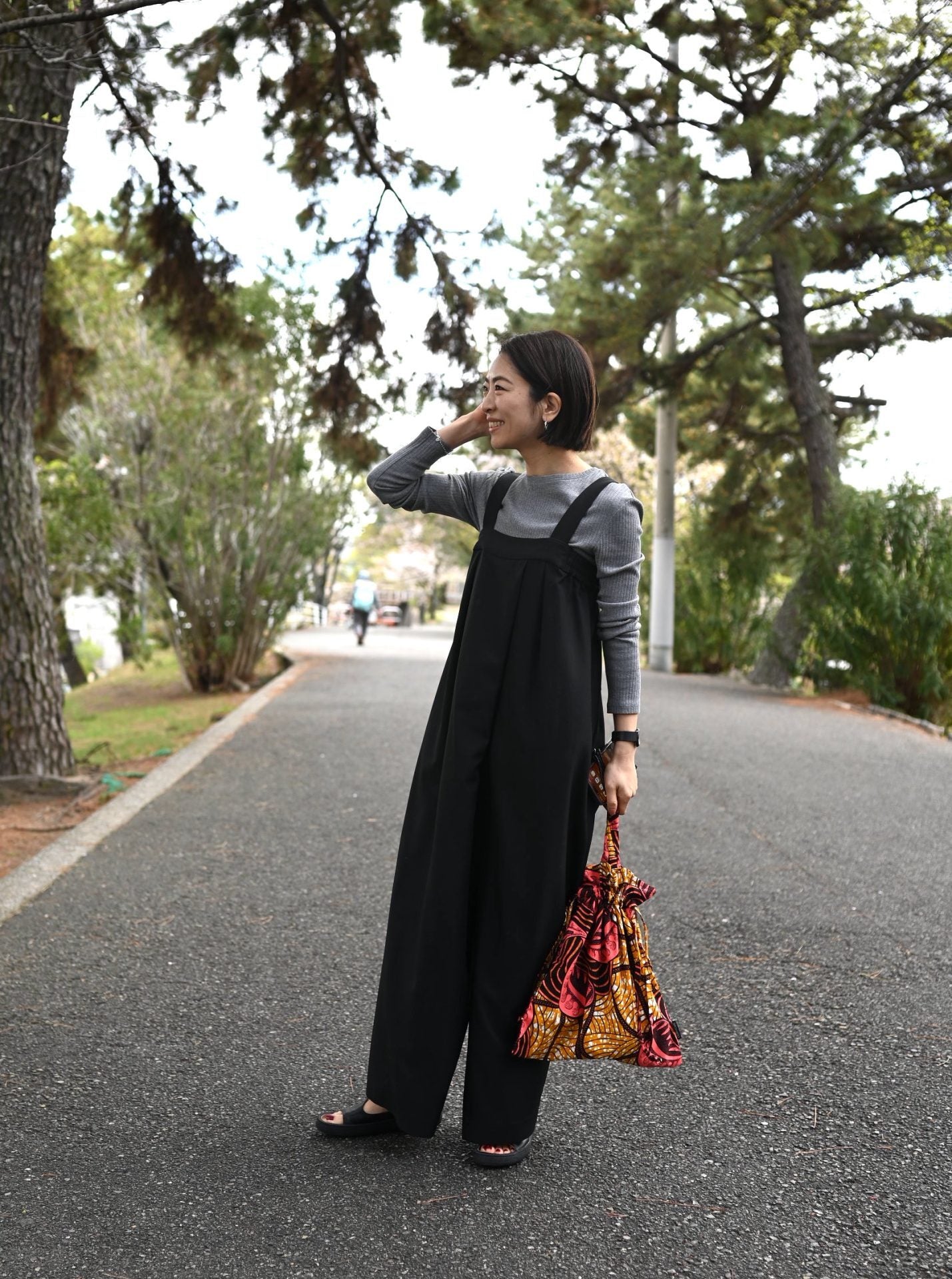 ゆったりシルエットのコクーンパンツ