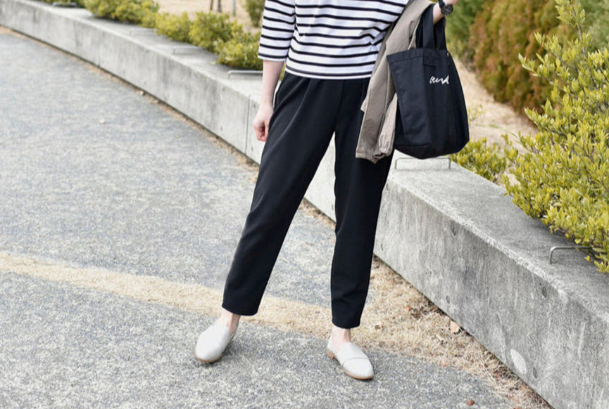 すっきりシルエットのテーパードパンツ