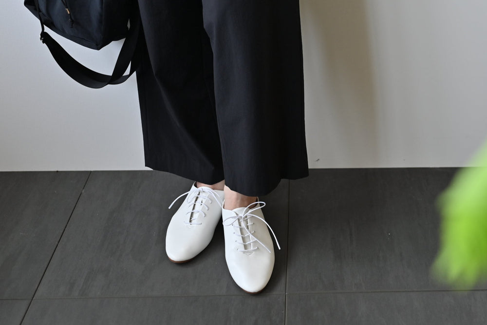 ちょっと雨が降るかも…という日には、生活防水加工の「エナメルスリッポン」や「マシュマロレースアップシューズ」がお手入れもラクでおすすめです。