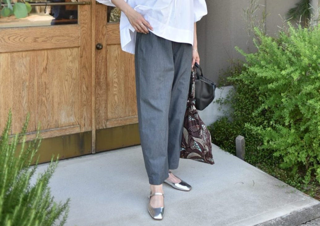 ゆったりシルエットのコクーンパンツ