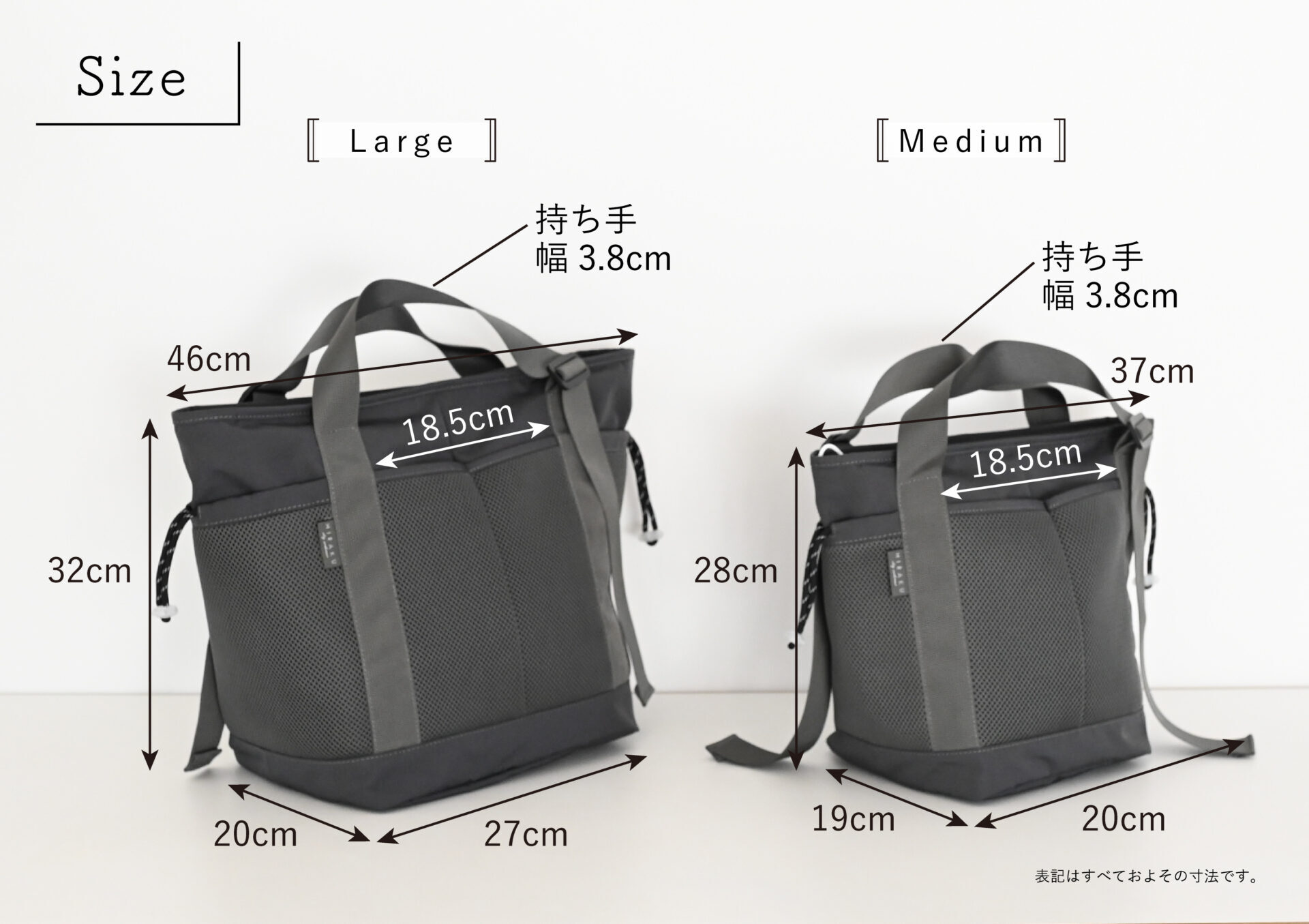 どちらのサイズも、持ち手の長さは調節して変えられるので、肩掛けも手持ちもOKです。