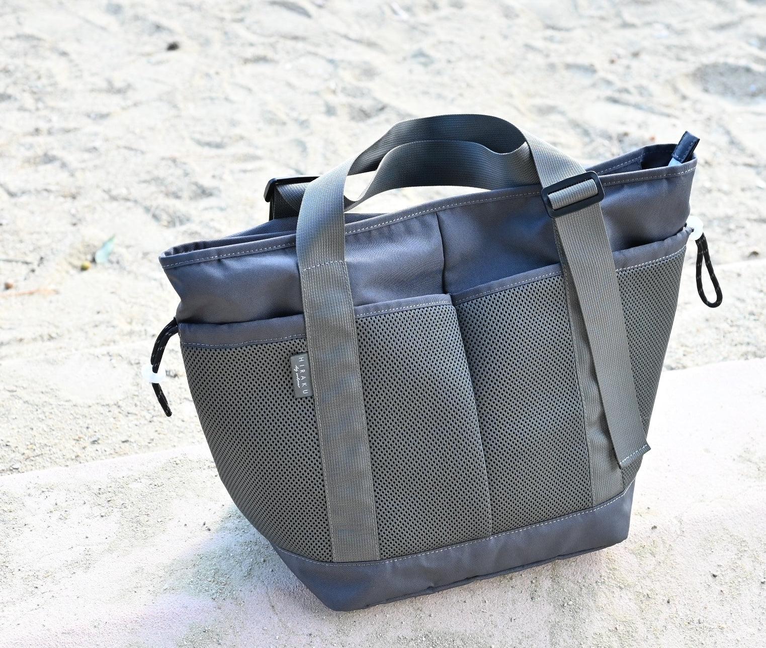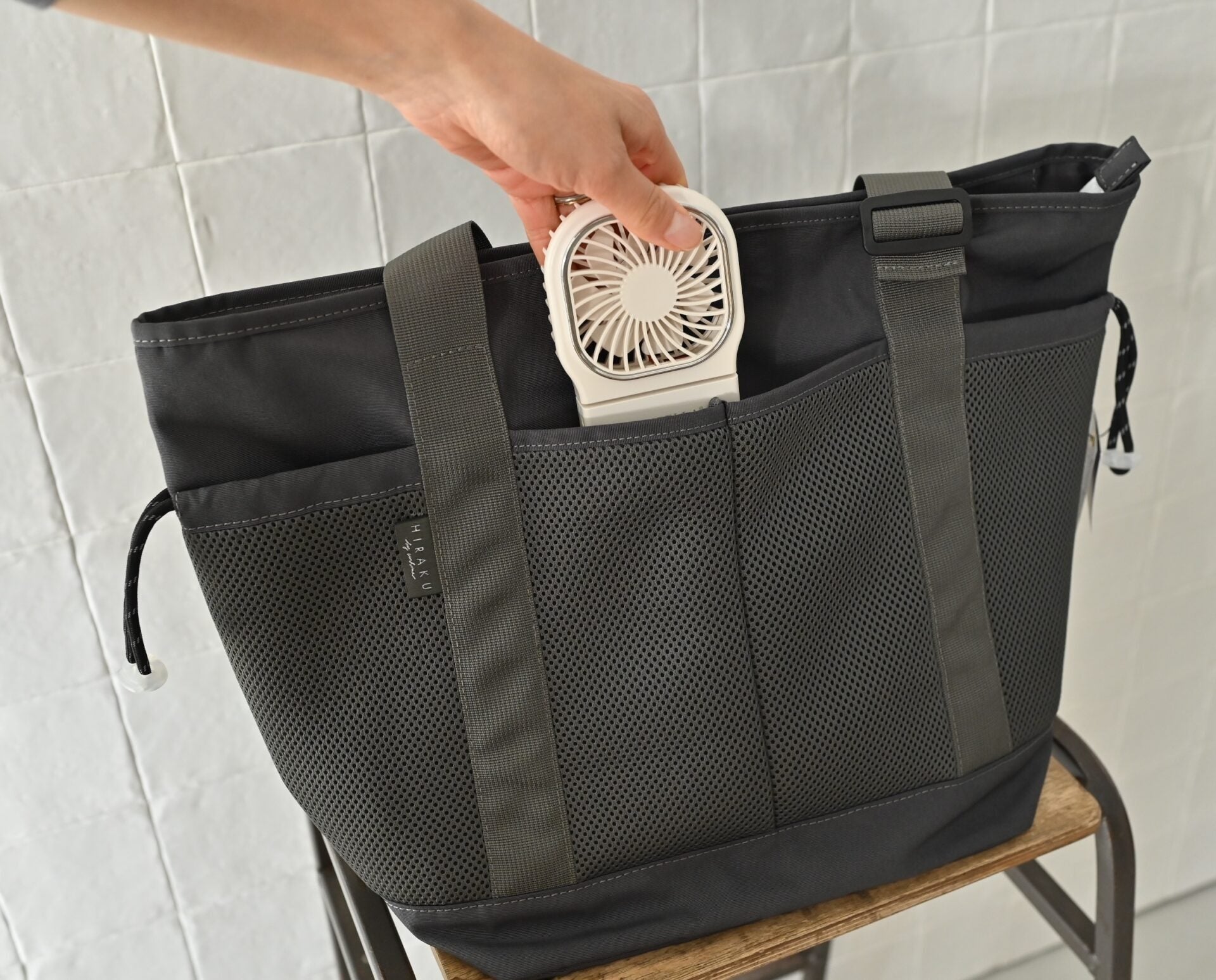 そんなときに便利なポイントを詰め込んだ「H I R A K Uメッシュトート」をお作りしました。