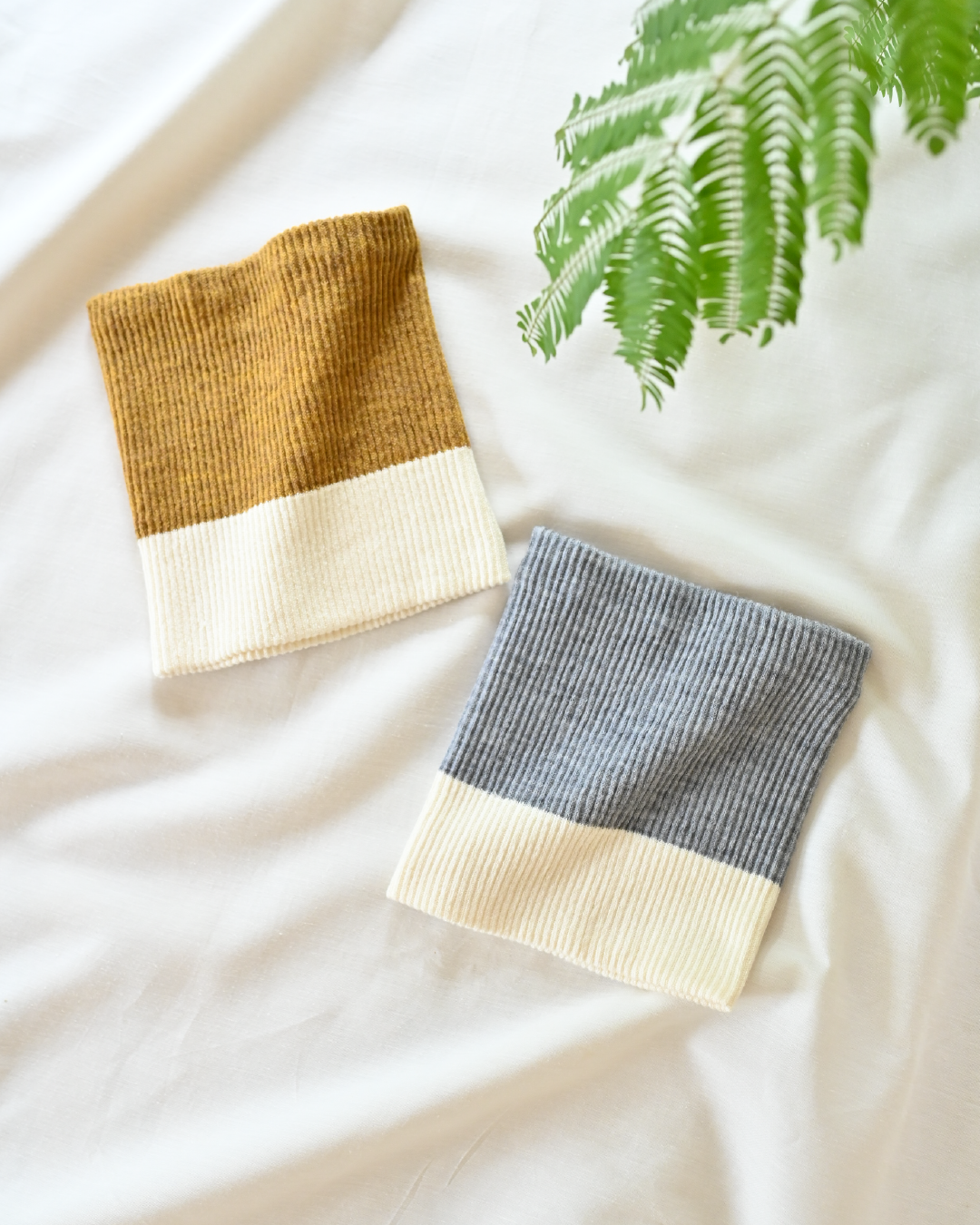 「マスタード×エクリュ」「杢グレー×エクリュ」