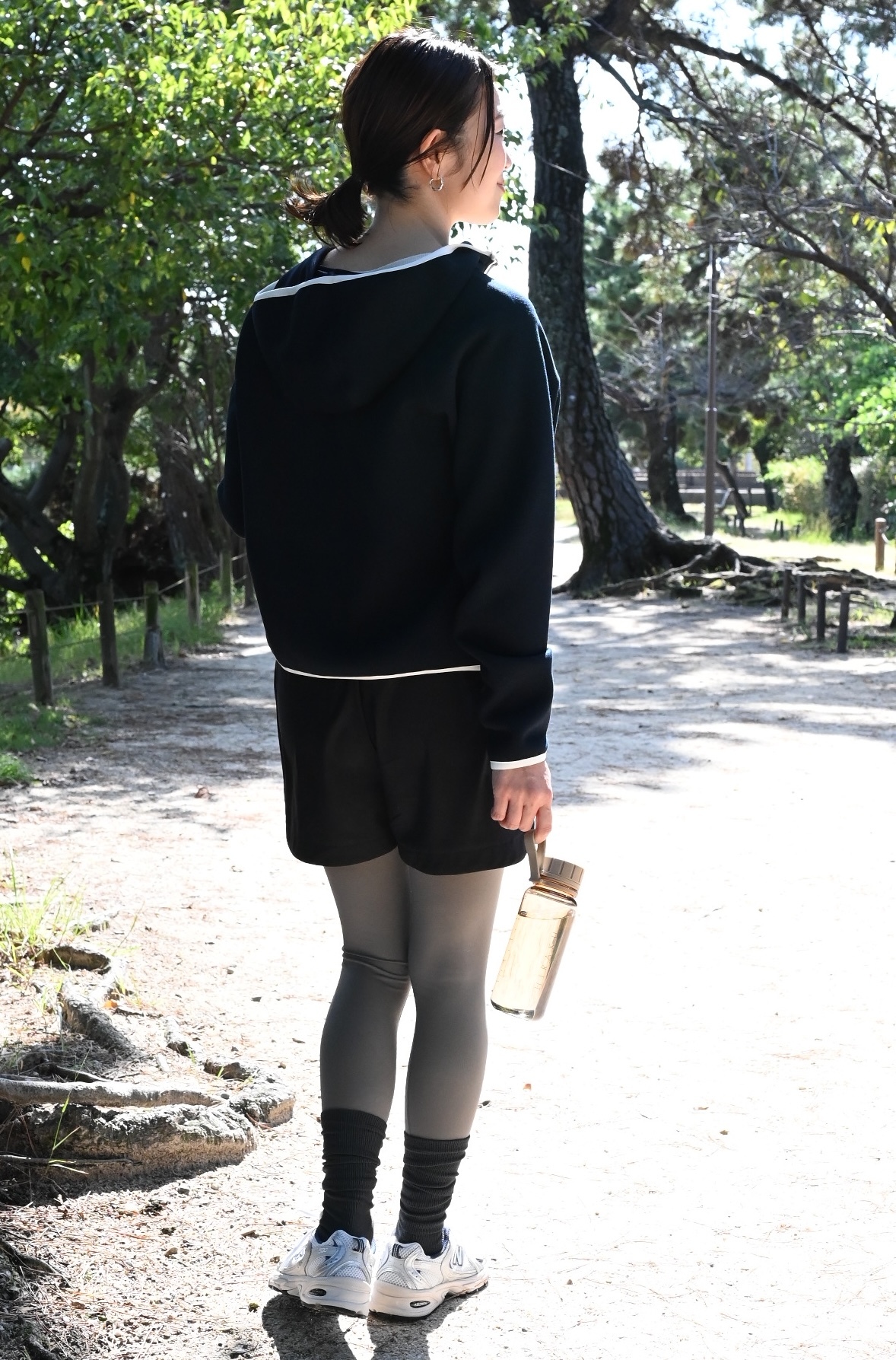 【ベージュ】「ダブルジップパーカー(UVカット)(26年1月発売予定)」「ちょうどいい丈感、水陸両用ショートパンツ」「きれいに穿けて動きやすいフィットレギンス」「シルク素材のレッグウォーマー」