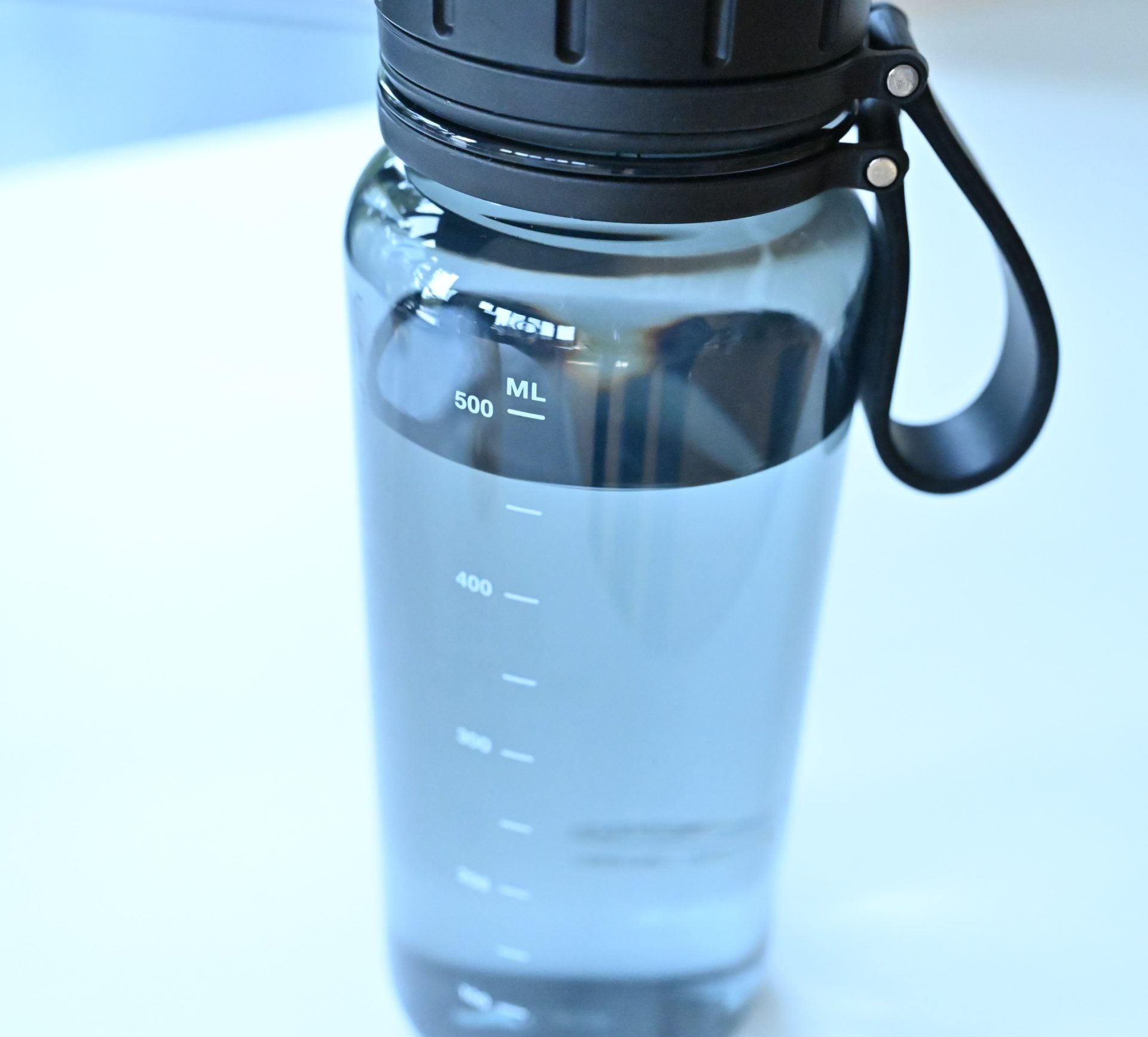「飲んだ量がひとめでわかる、 目盛り付きクリアボトル」ができあがりました。