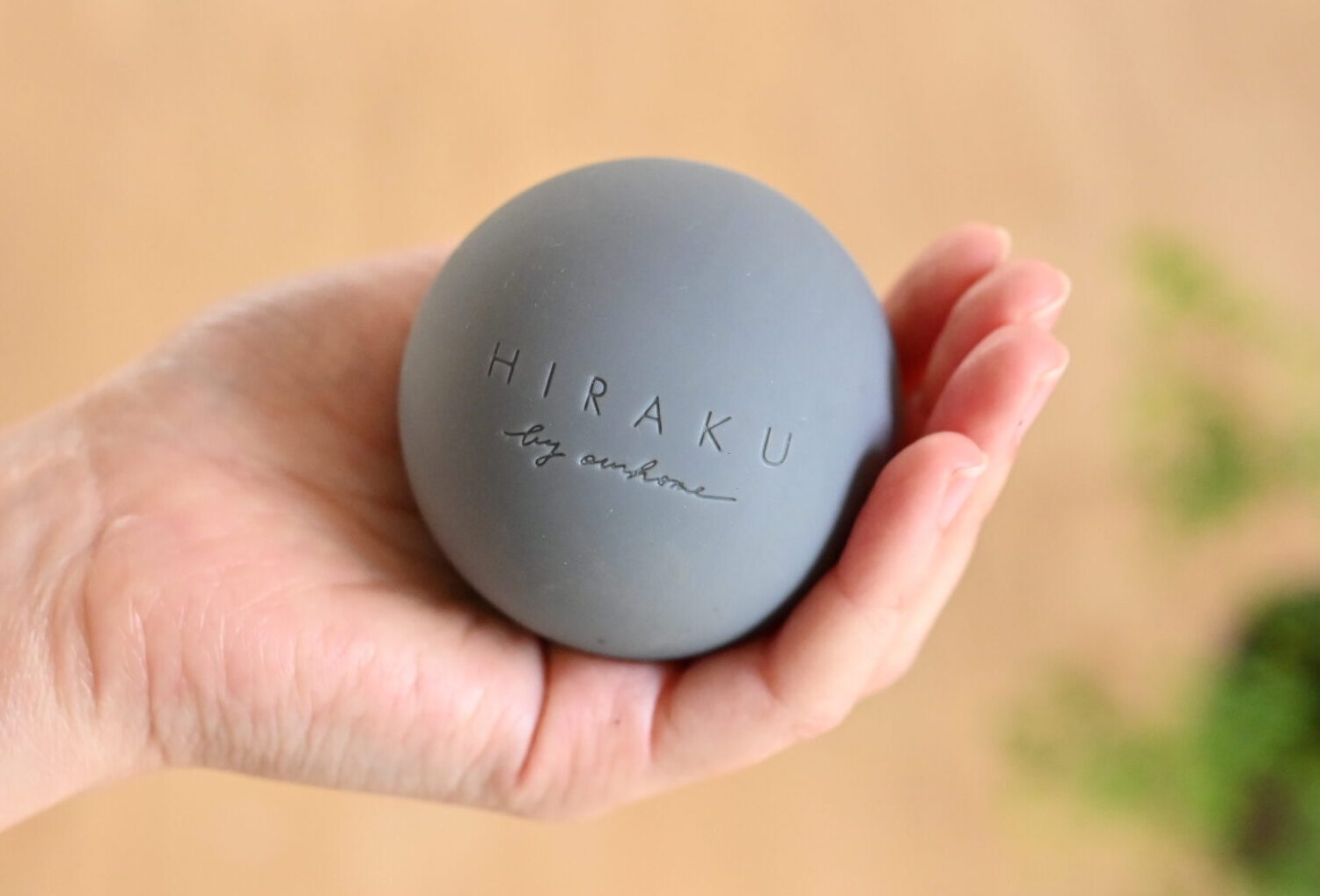 H I R A K Uのロゴを刻印した、マッサージボールをおつくりしました。
