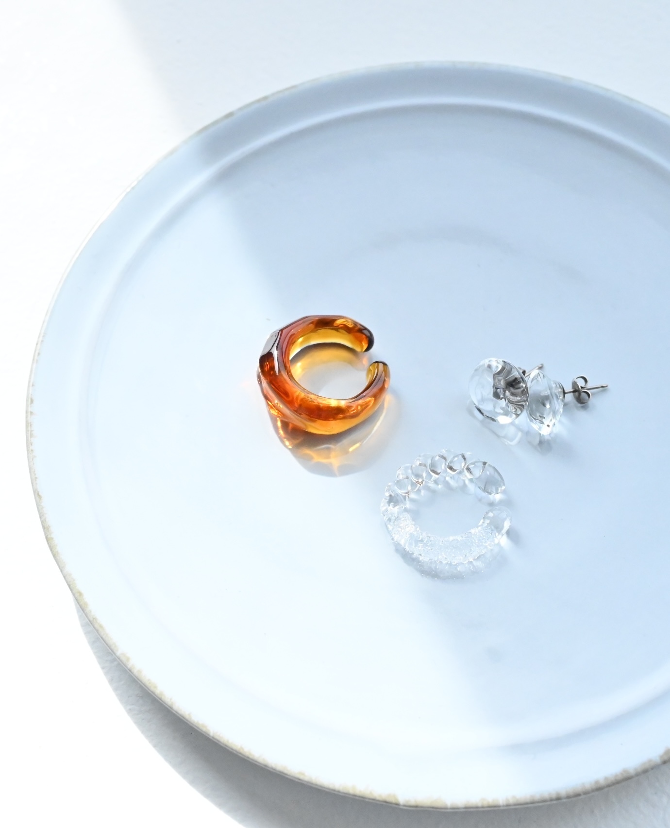 角度や光の入り方によって、濃い色合いに見えたり、クリア部分が見えたり、様々な表情を楽しめます。