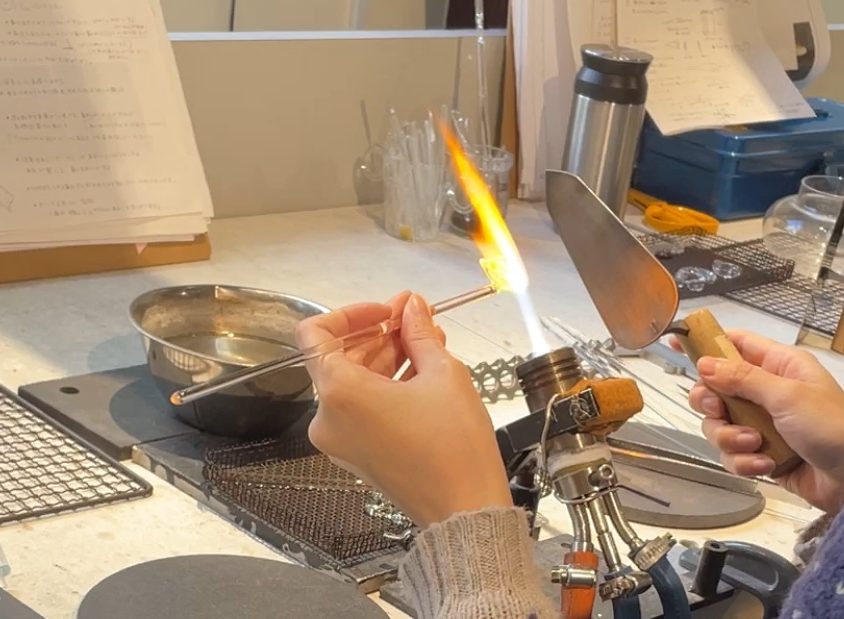 こちらのアクセサリーは、老舗のガラスメーカーさんが、1つ1つ手作業でお作りします。