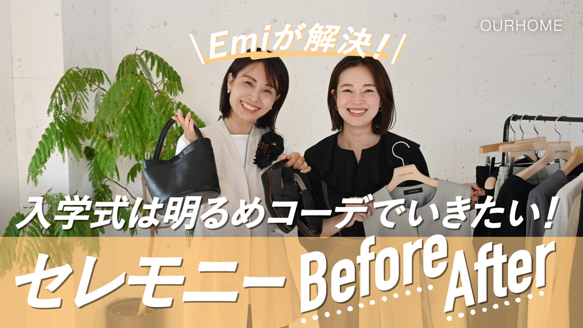 「ハレの日コサージュ」「淡水バロックパールのネックレス」「艶やかレザーのキューブバッグ」「フォーマルに使えるレザーパンプス」