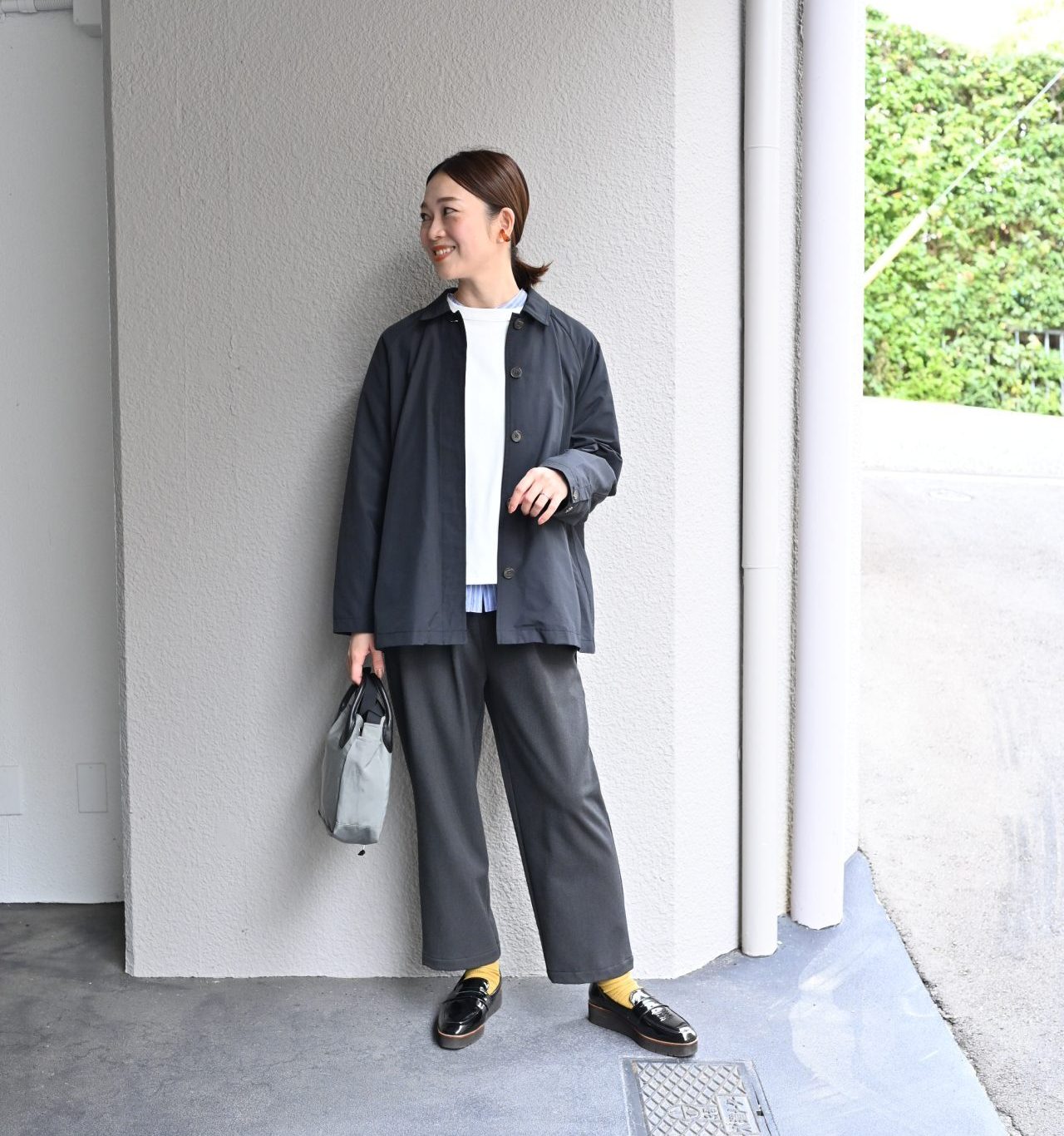 襟は、きちんとしすぎず、きれいめに着られるステンカラー。