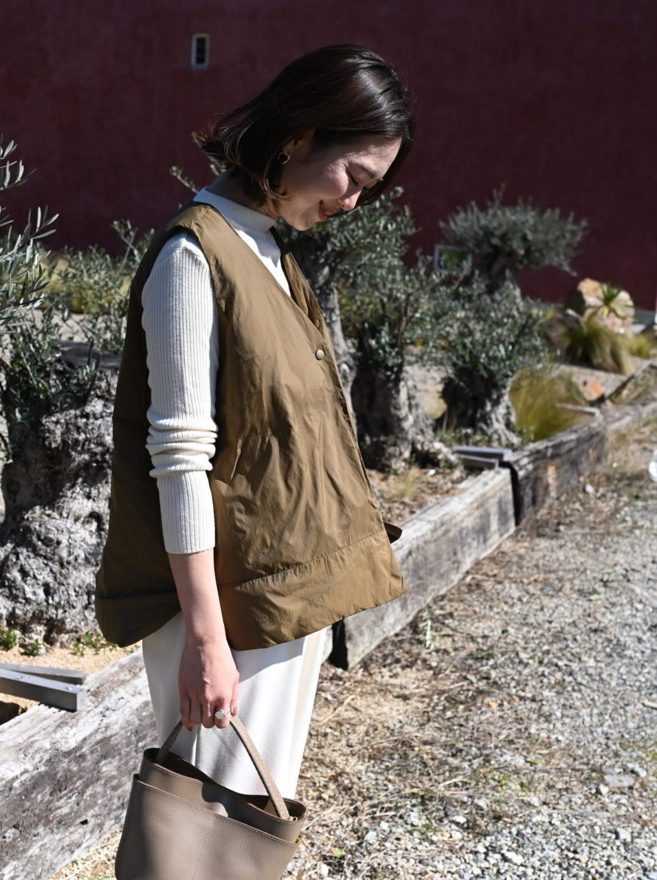 お色はどんなコーデにも馴染むオリーブブラウン。