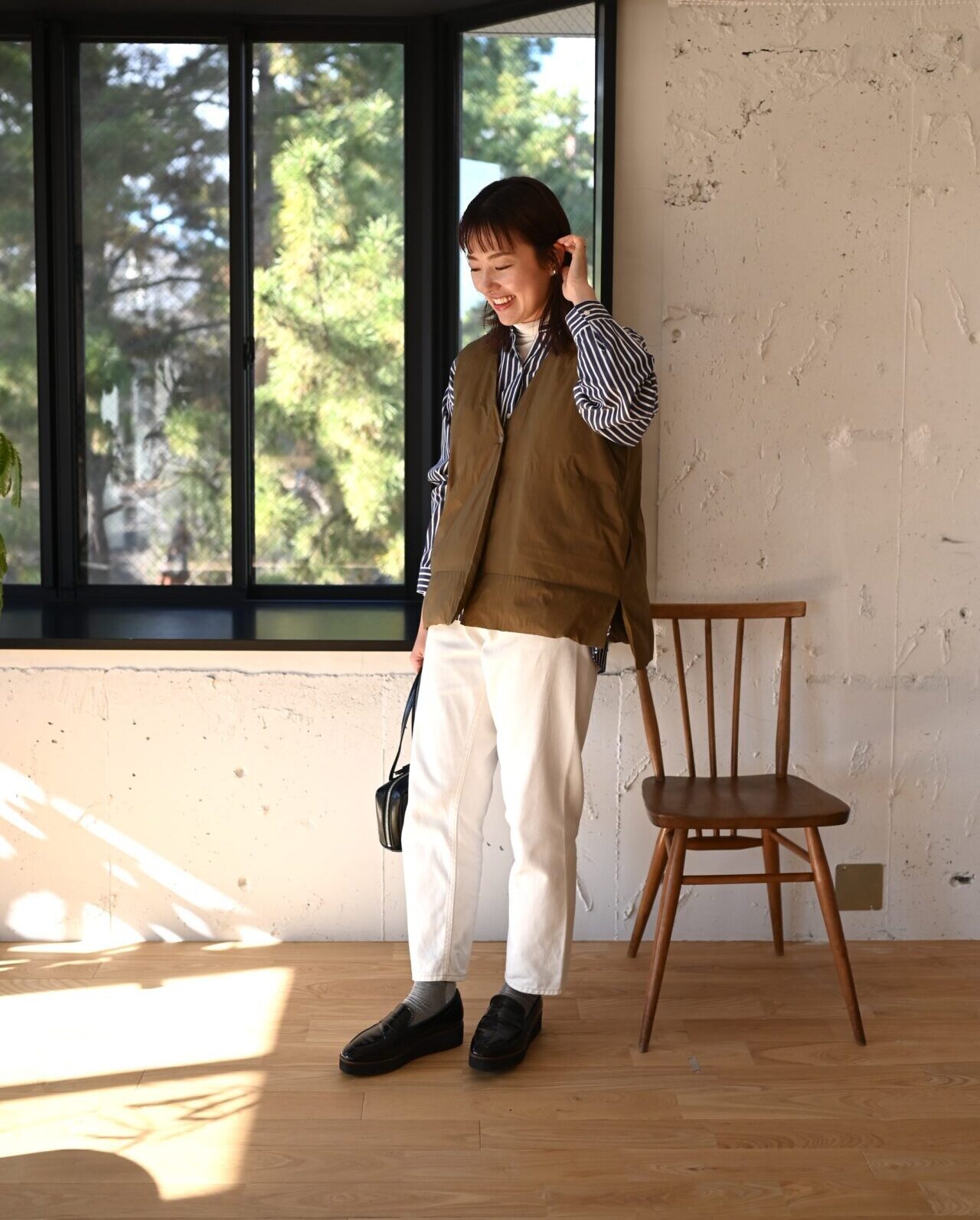 こんな風に、「綿100%の播州織シャツ」「こだわりシルエットのデニムパンツ」とも相性よくて◎