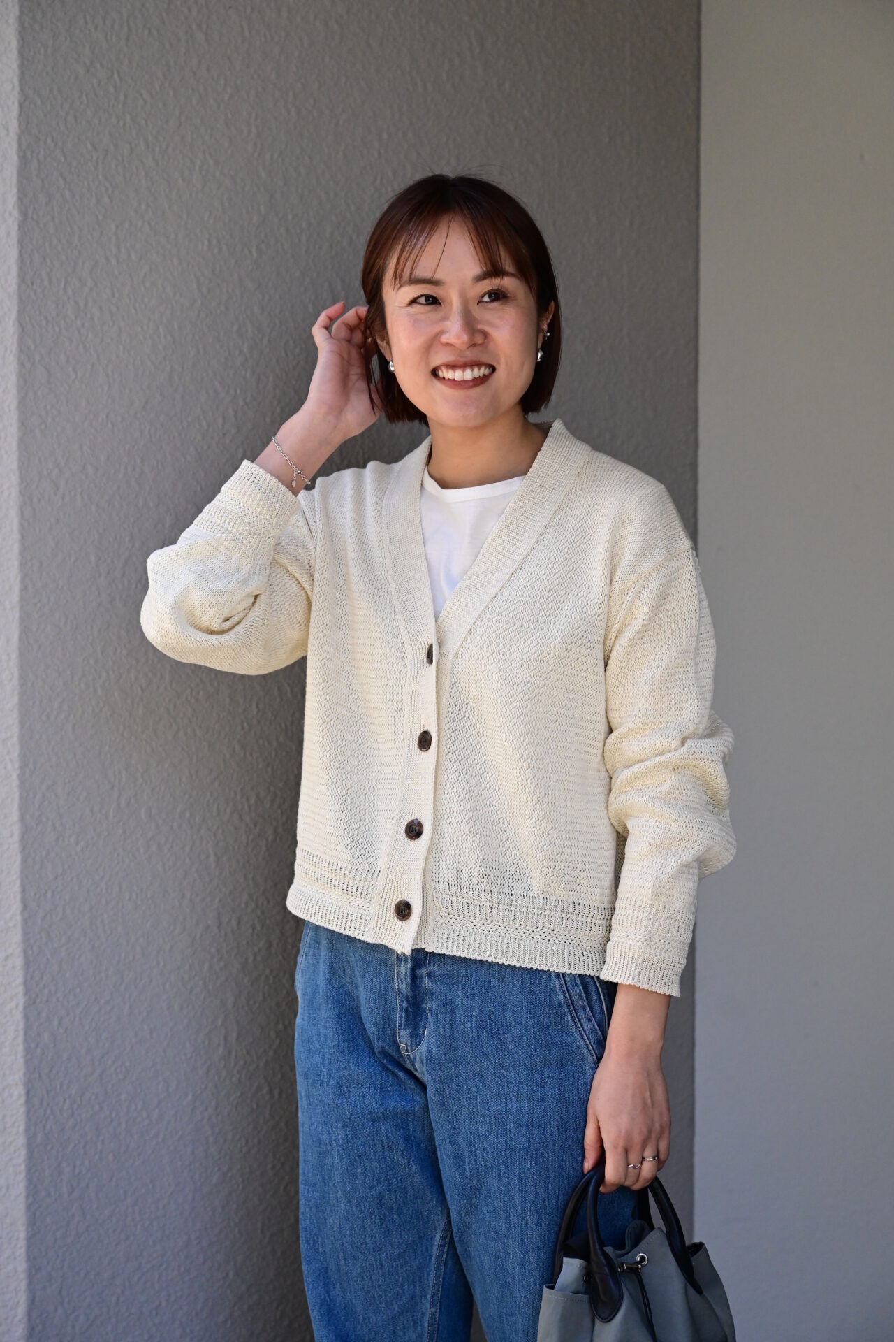 とっても軽やかで、お家で洗えるざっくりニットカーディガンをお作りしました。