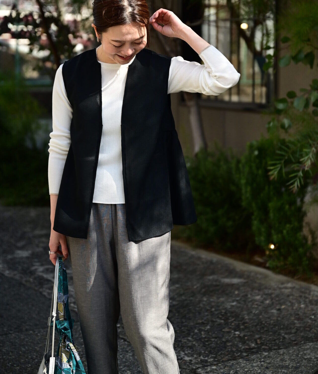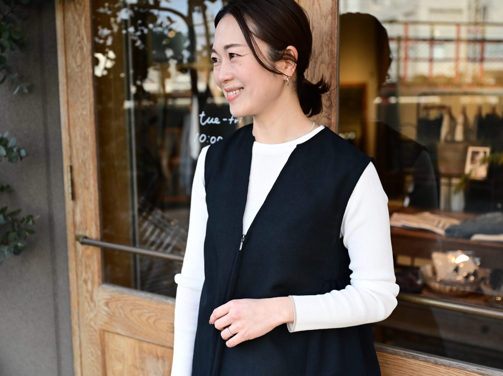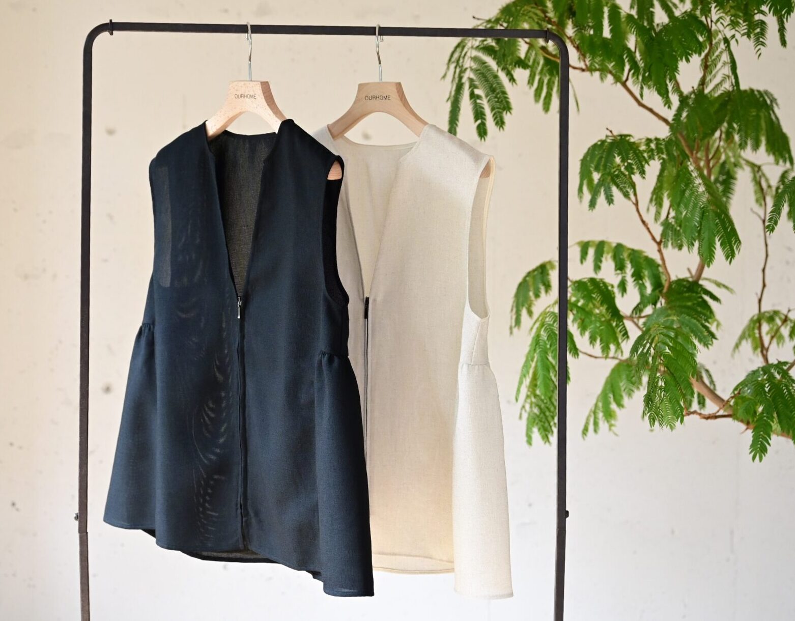 重ねるだけで、体温調整ができてコーデが新鮮!とOURHOMEで人気が高まっているベストアイテム。