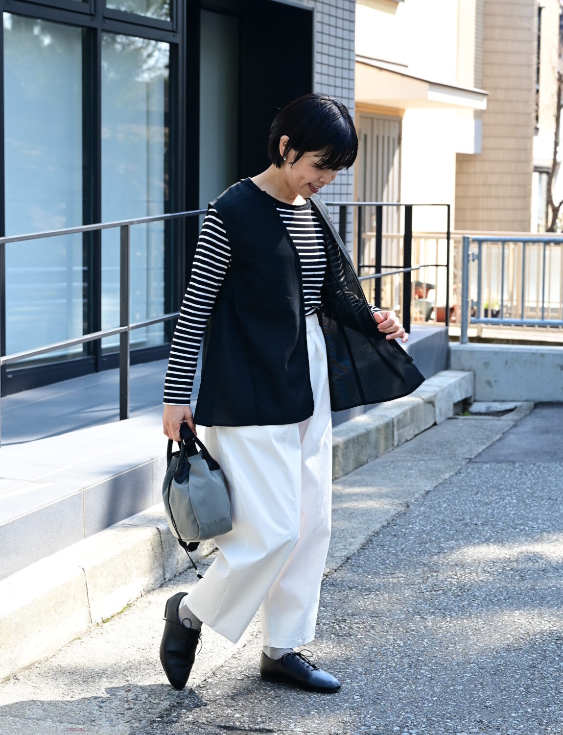 さらりと着心地も軽やかで、1枚足すだけでこなれた印象に。