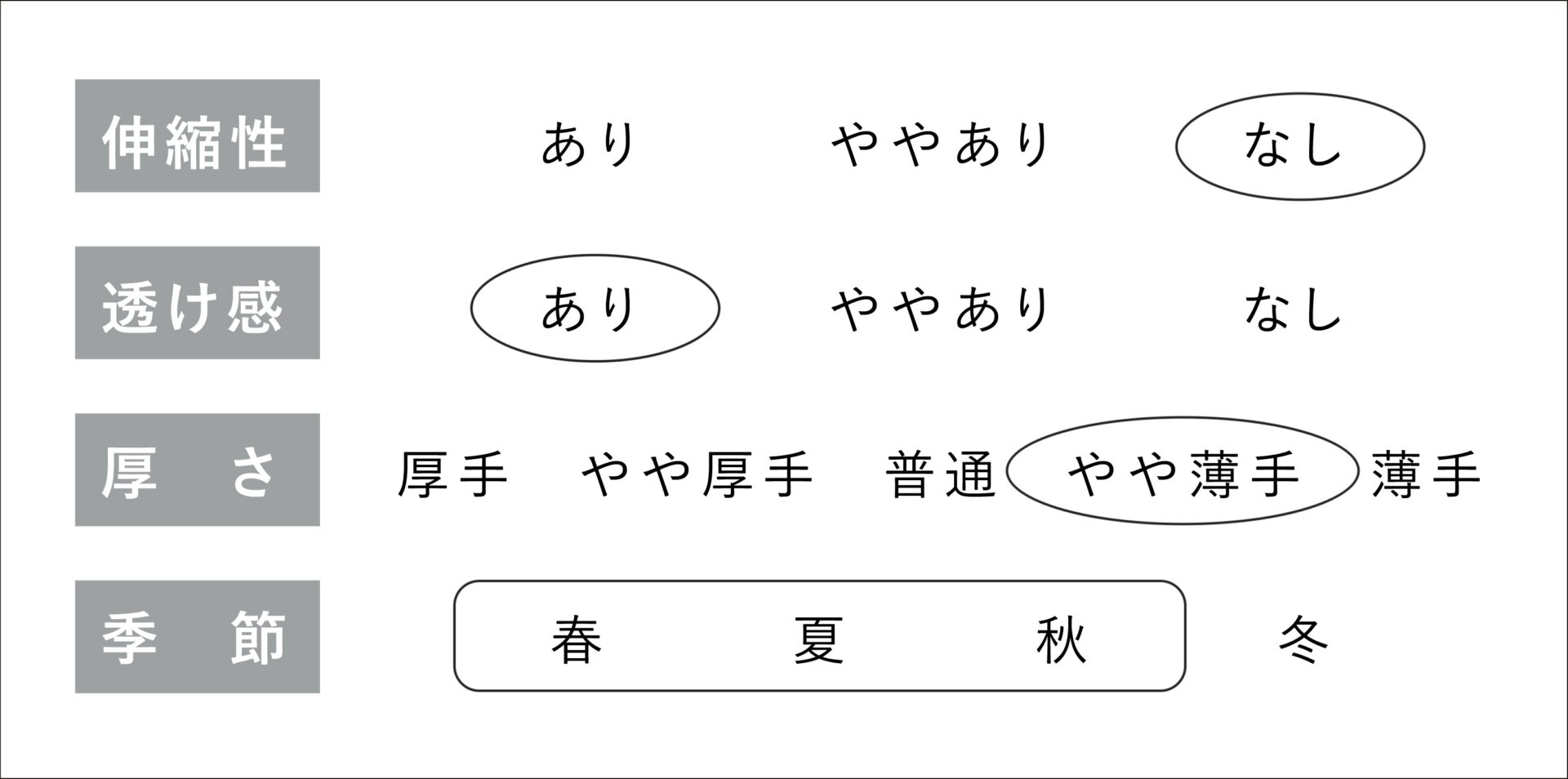 暑い季節でも快適に過ごせる、さらっとした肌離れの良さが魅力です◎
