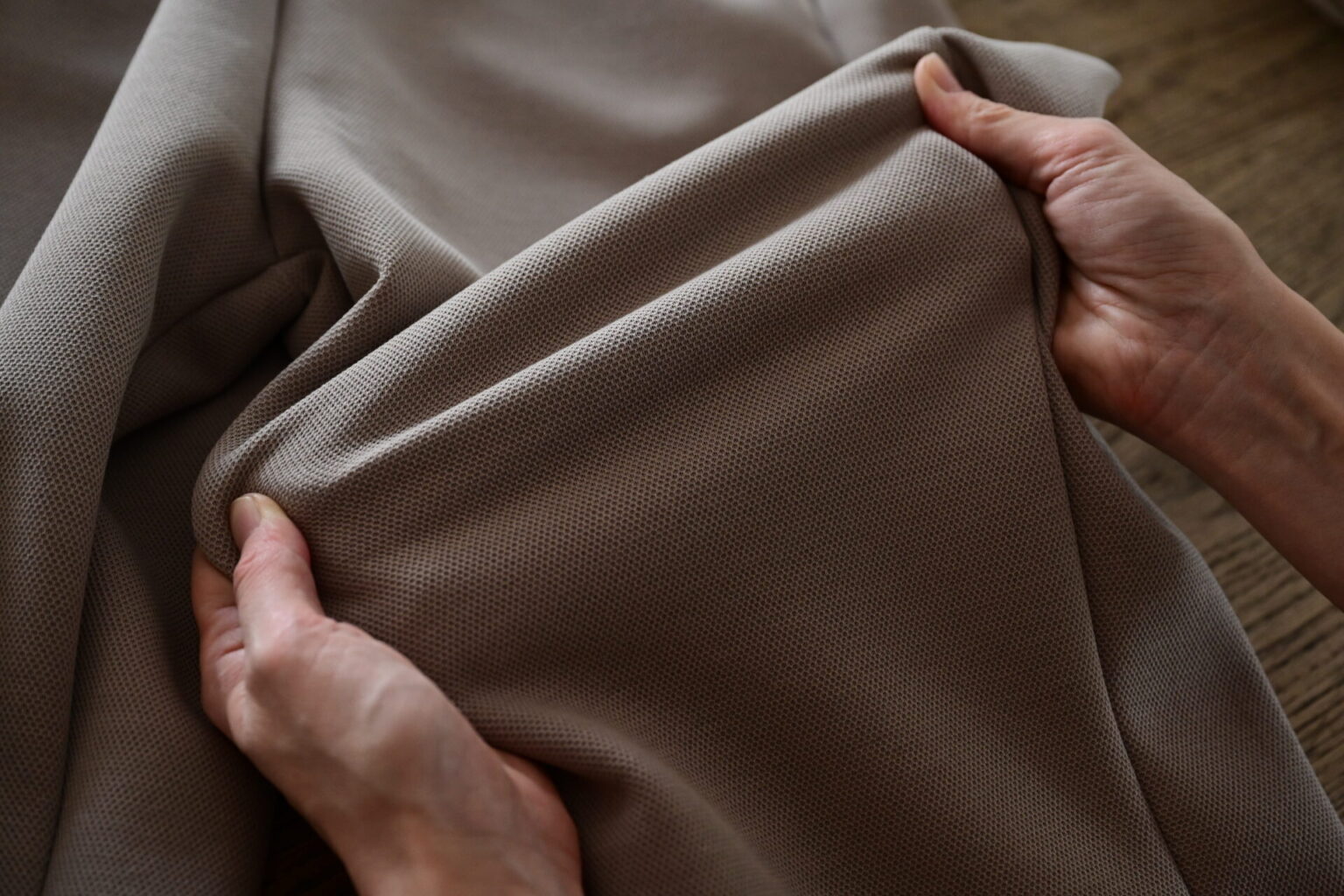 表面は、さりげない凹凸のある生地で、さらりとした着心地。