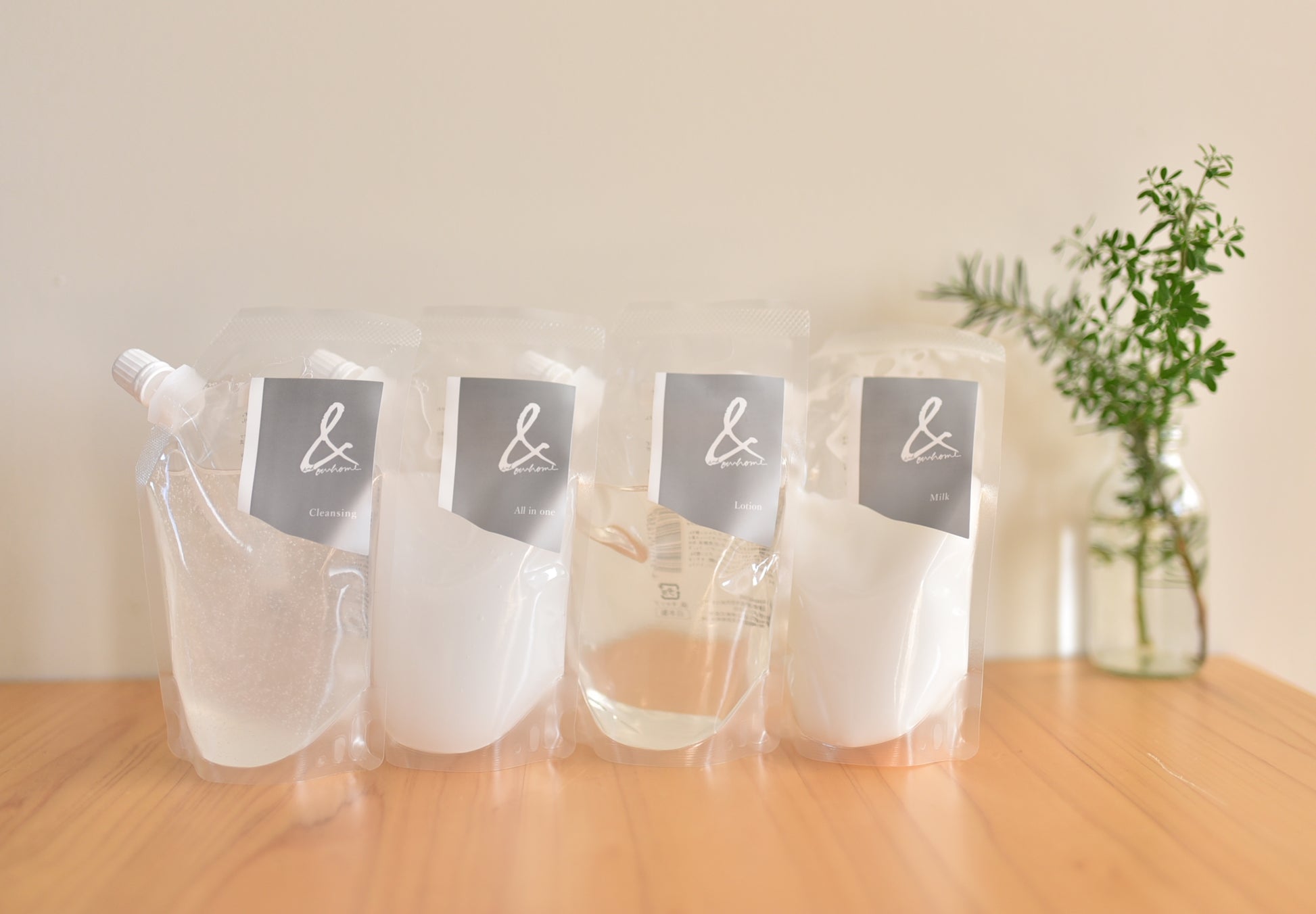 「オールインワンジェル詰め替えセット」「クリアモイストローション詰め替えセット」「モイスチャーミルク詰め替えセット」